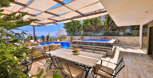 Havuz ve Bahçe : Villa havuz terasında özel yüzme havuzu, şemsiye, şezlong, barbekü, oturma grubu bulunmaktadır.