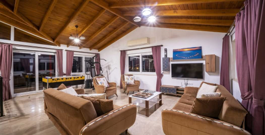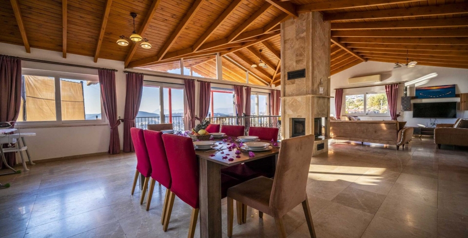 Mutfak : Deniz ve Doğa Manzarasına Hakim Ferah bir Salon , Oturma Grubu , TV , Kablosuz İnternet , Klima
