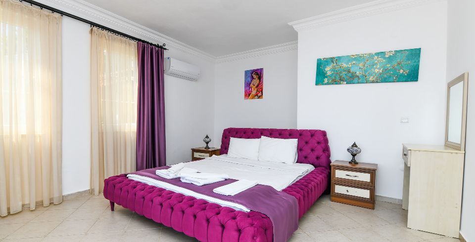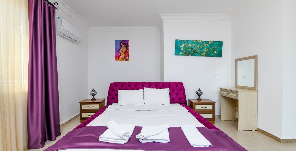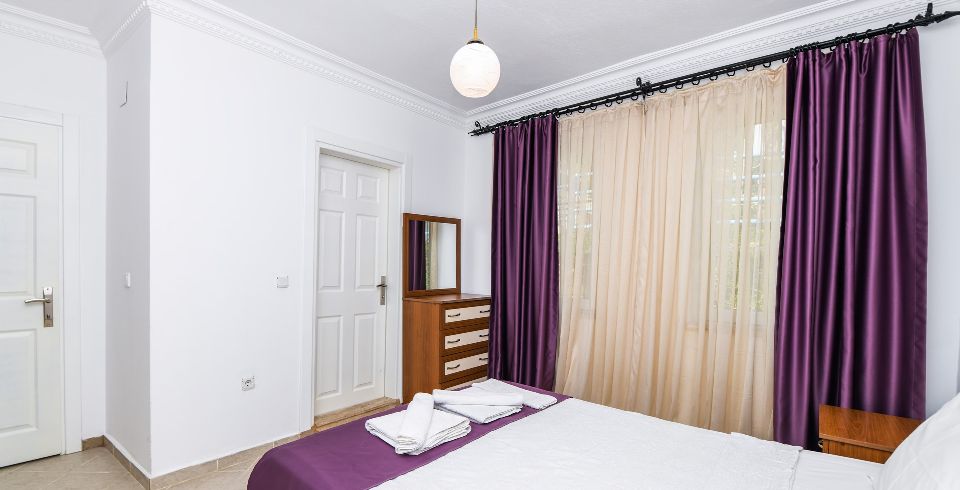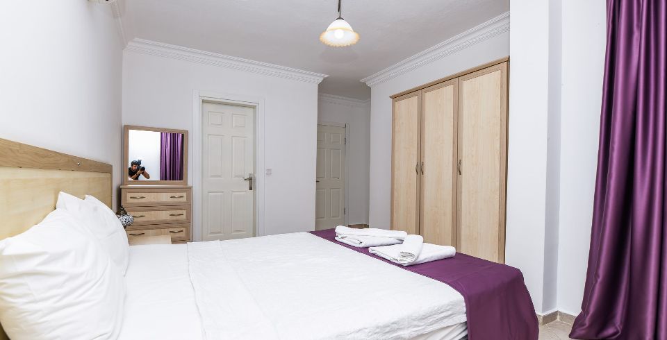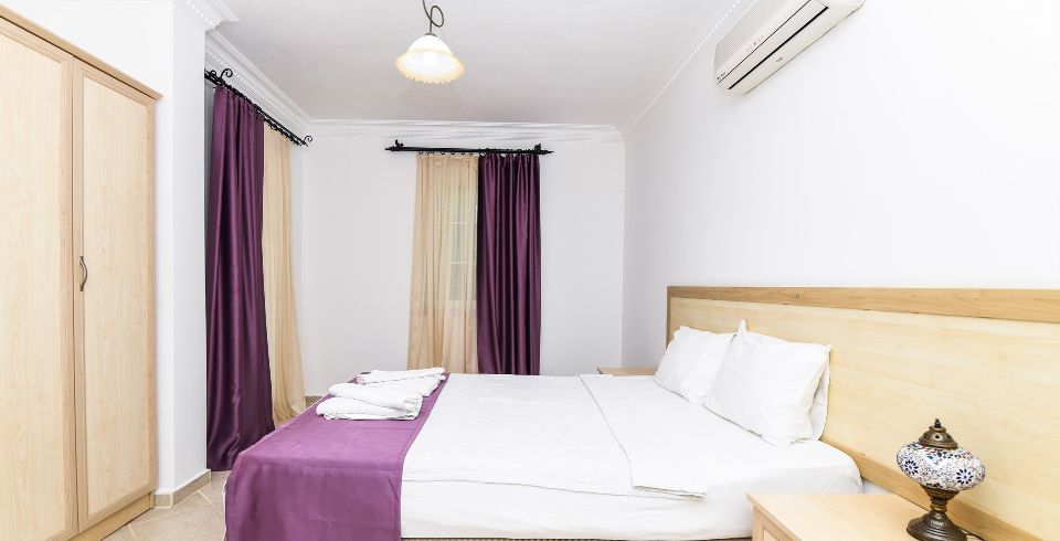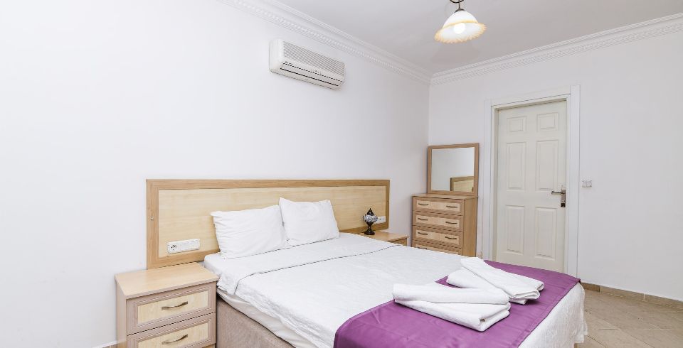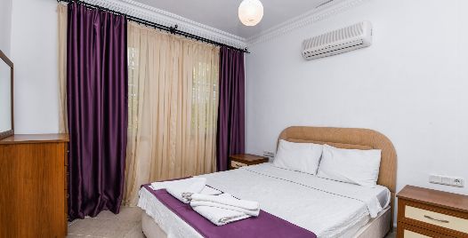 3. Yatak Odası : Çift kişilik yatak, klima, komodin, elbise dolabı, banyo ve tuvalet bulunmaktadır.