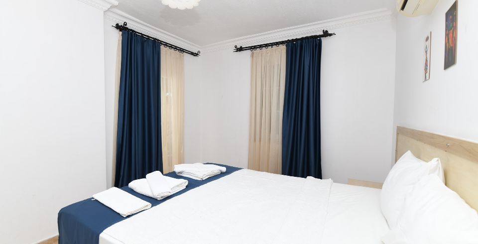 2. Yatak Odası : Çift kişilik yatak, klima, komodin, elbise dolabı, banyo ve tuvalet bulunmaktadır.