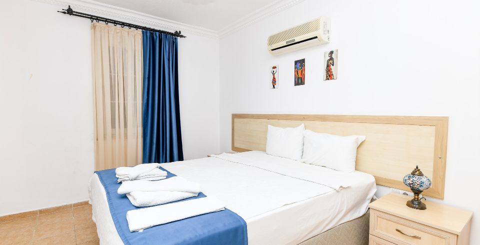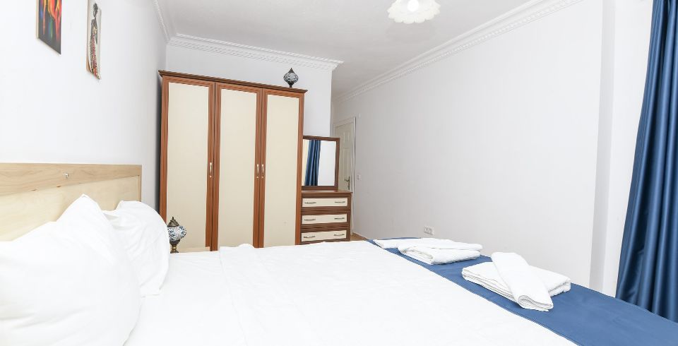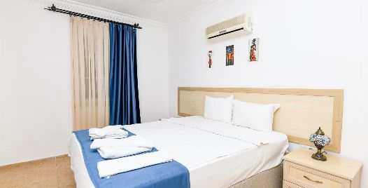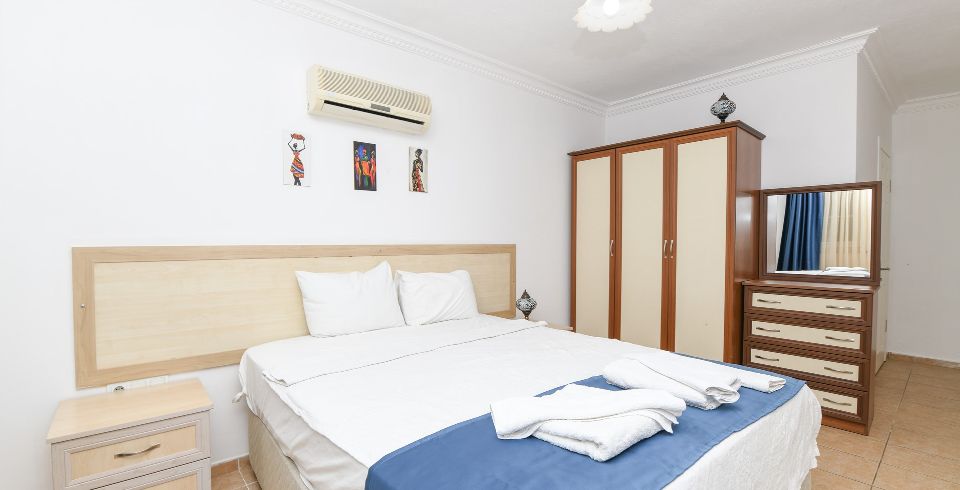1. Yatak Odası : Çift kişilik yatak, klima, komodin, elbise dolabı, banyo ve tuvalet bulunmaktadır.