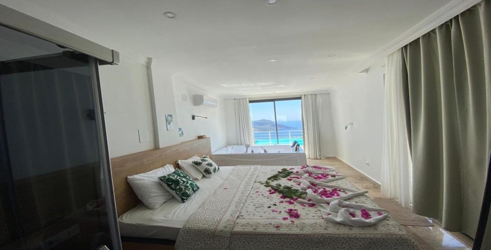 1. Yatak Odası : 1 adet çift kişilik yatak, Jakuzi, klima, komodin, elbise dolabı, makyaj masası, banyo ve lavabo bulunmaktadır.