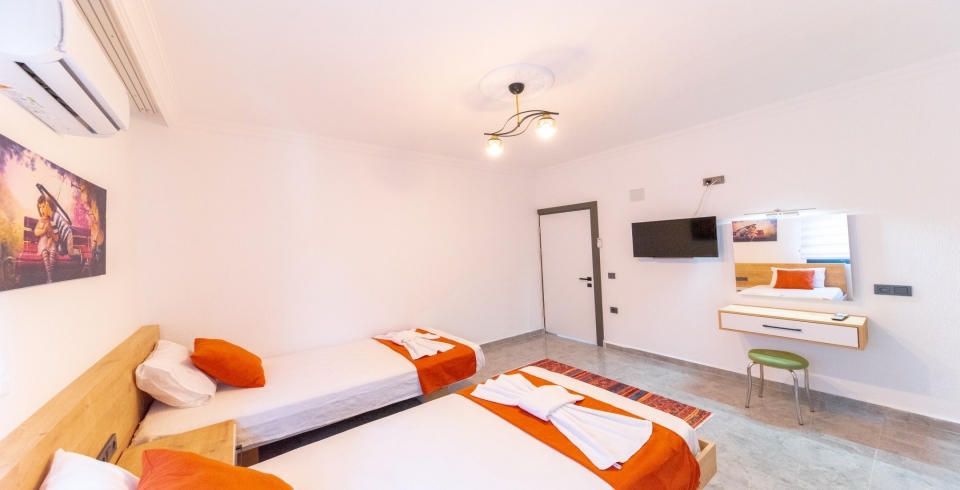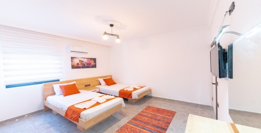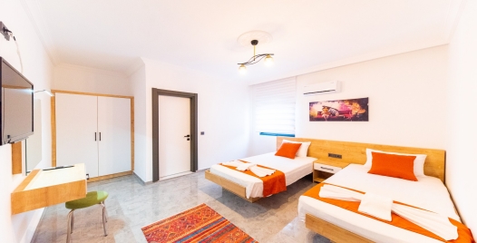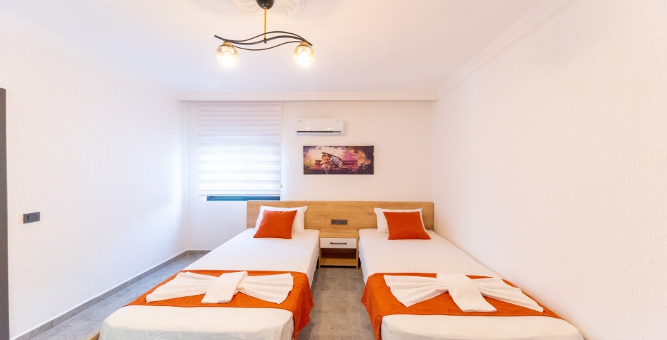 2.Yatak Odası: 2 adet tek kişilik yatak, elbise dolabı, komodin, klima, makyaj masası, TV, banyo ve lavabo bulunmaktadır.