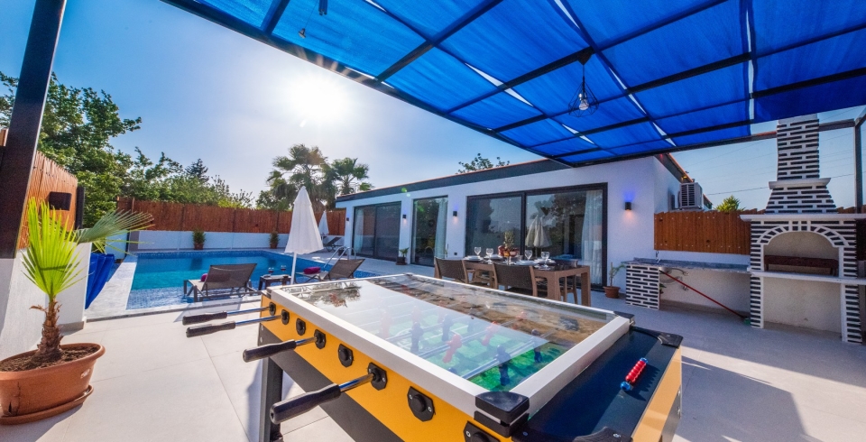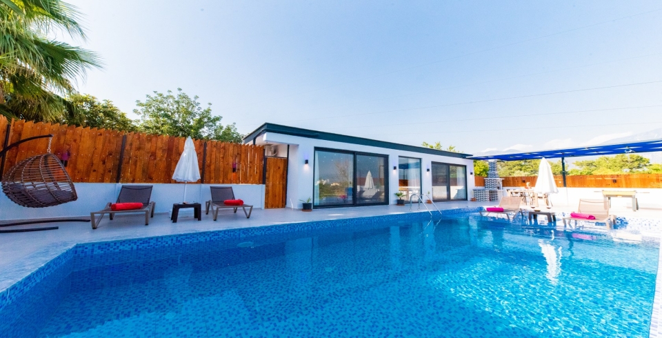 Havuz ve Bahçe: Özel yüzme havuzu, şezlong, şemsiye, salıncak, bahçe mobilyaları, yemek masası, barbekü bulunmaktadır.