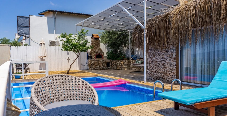 Havuz ve Bahçe : Villamızın havuz terasında şezlong, oturma grubu, barbekü, yemek masası, özel yüzme havuzu bulunmaktadır.