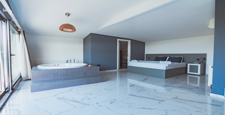 1. Yatak Odası: 1 adet çift kişilik yatak, elbise dolabı, makyaj masası, klima ve banyo-tuvalet yer almaktadır.