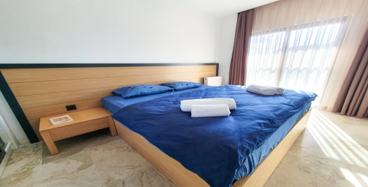 2. Yatak Odası: 1 adet çift kişilik yatak, elbise dolabı, makyaj masası, banyo, tuvalet ve klima yer almaktadır.