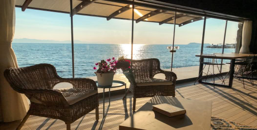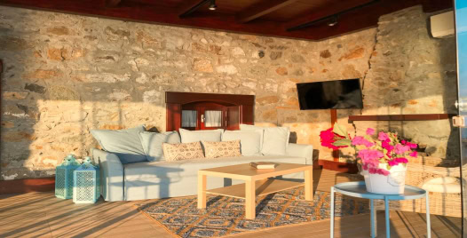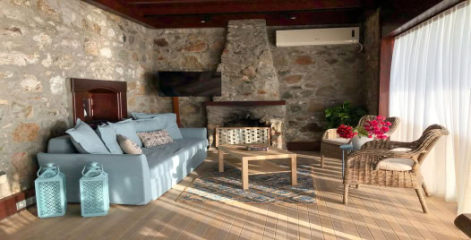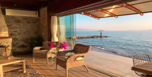 750 m² arazi içinde, denize sıfır konumda yer alan yazlık villamız, eski bir taş evden özenle restore edilerek siz değerli misafirlerimizin hizmetine sunulmuştur. Aileniz veya eşinizle unutulmaz bir tatil geçirmeniz için tasarlanan villamızda, sabah kahvaltınızı ve gün batımı eşliğinde akşam yemeğinizi eşsiz manzarasıyla taçlandırabilirsiniz.