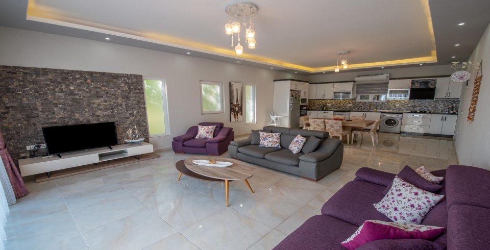 Salon: Konforlu oturma grubu, TV, orta sehpa , klima bulunmaktadır.