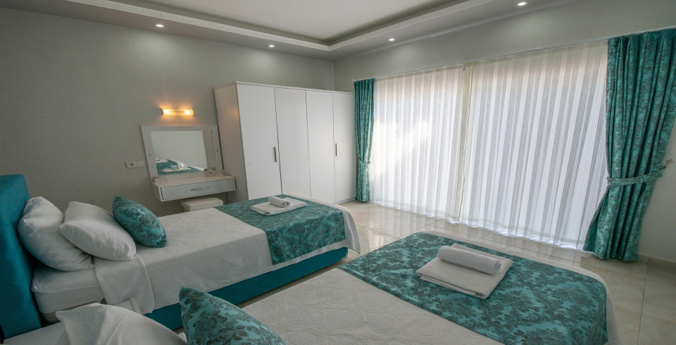 2.Yatak Odası: 2 adet tek kişilik yatak, komodin, makyaj masası, klima, elbise dolabı, banyo ve lavabo bulunmaktadır.