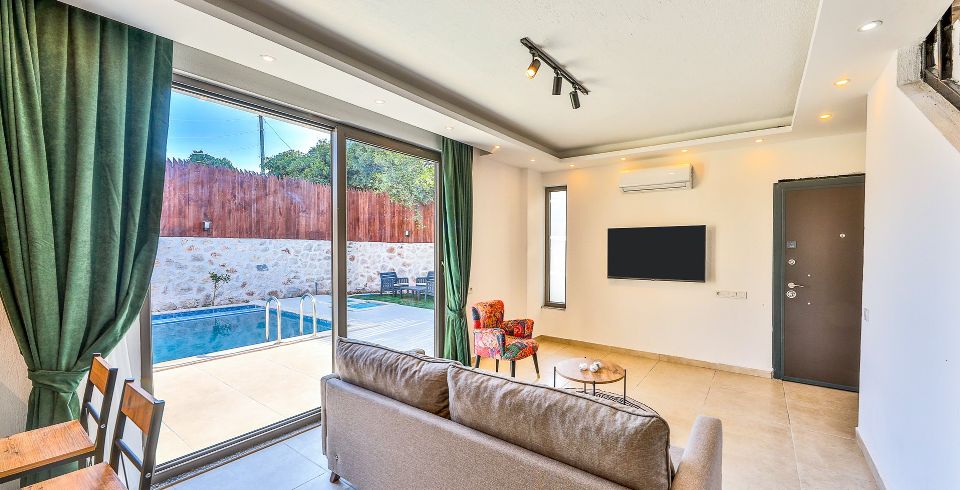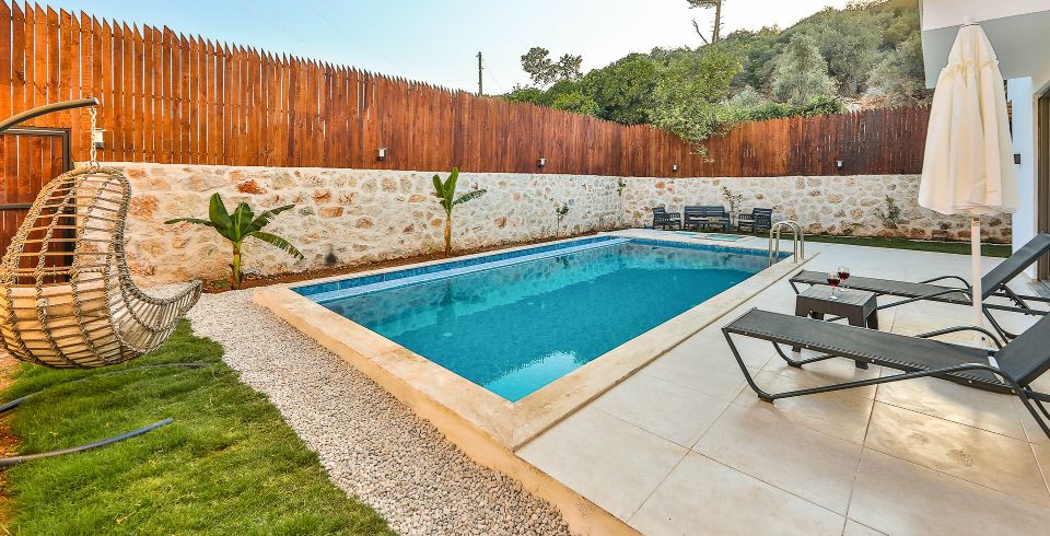 Villamız Kalkan Patara bölgesinde yer almaktadır. 1 yatak odasına sahip tatil villamız 2 kişilik konaklama kapasitesine sahiptir. Doğa içinde bir konuma sahip olan tatil villamızın havuz alanı sizlere keyifli bir tatil ortamı sunmaktadır. Balayı çiftleri için ideal bir seçenek olan muhafazakar hassasiyete sahip misafirlerimiz içinde uygun bir tatil ortamı sunmaktadır.