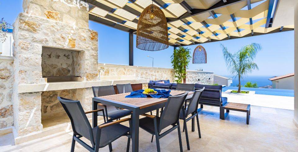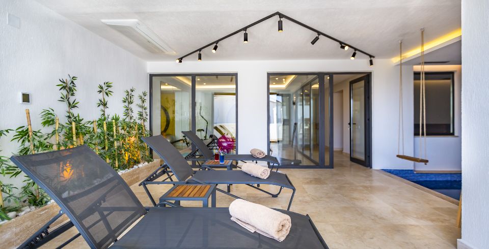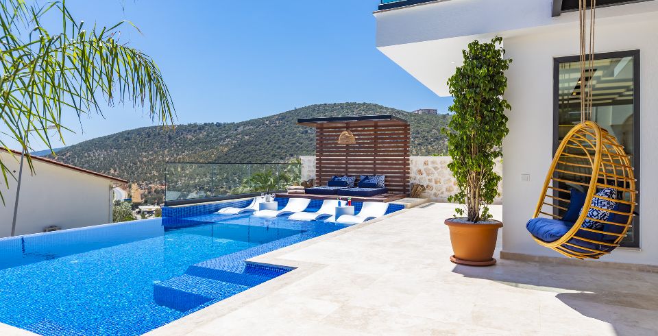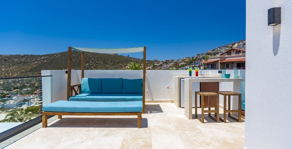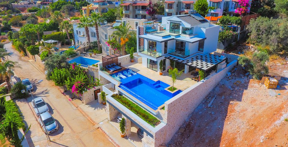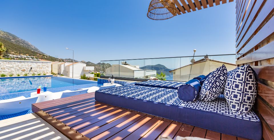 Kalkan Kızıltaş mevkiinde bulunan villamız 3 yatak odalı olup 2 adet jakuzisi mevcuttur. son derece lüks bir şekilde dizayn edilen villamızda sauna ve kapalı havuz da mevcuttur. Huzurlu bir tatilin yanında sağlıklı yaşam için ve spor aşığı kişiler için fitness salonu da bulunmaktadır. özenle hazırlanmış odaları lüks dizaynı ve deniz manzarası ile tatilin keyfini çıkarabilirsiniz. her yaş grubuna hitap eden ve içinde farklı aktiviteler bulabileceğiniz villamızda özel olarak sinema odamızda bulunmaktadır. villamız bahçesinde deniz manzarası eşliğinde mangal keyfi yapabilir havuzun keyfini çıkarabilirsiniz.