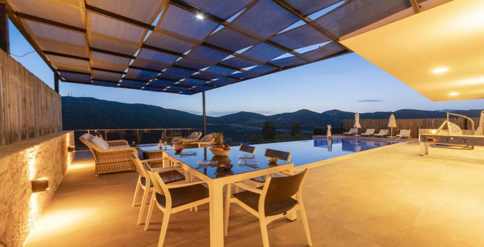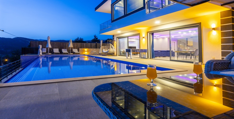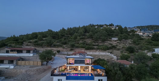 Kalkan’ın Sarıbelen bölgesinde konumlanan kiralık, yazlık, muhafazakar, iki katlı – dubleks villamız hem balayı çiftlerimizin hem de muhafazakar çekirdek ailelerin tercihi olup 2 yatak odalı ve 4 kişilik konaklama kapasitesine sahiptir. Kalkan’ın panoramik deniz manzarasına karşı ve doğa ile iç içe olan Villa Pilot modern bir mimari anlayışı ile inşa edilmiştir aynı zamanda iç mekanında da oldukça lüks, şık ve modern eşyalarla donatılmıştır. Villamızın süit yatak odasında sonsuz manzaraya karşı çift kişilik jakuzi bulunmaktadır. İnşaatı 2020 yılında tamamlanan yeni villamız sitemizde yerini aldı. Sarıbelen merkezine yakın konumda yer alan Villa Pilot, günlük ihtiyaçlarınızı kolaylıkla karşılayabileceğiniz bir mesafe uzaklığındadır. Buna rağmen villamız kişisel aracınız yoksa konaklama için pek de uygun değildir. Siz misafirlerimize şimdiden keyifli tatiller diler, pişman olmayacağınızı, hatta tekrar tekrar bizi tercih edeceğinizi belli etmek isteriz.