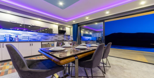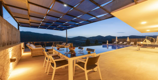 Salon : Villa Pilot’un salonunda sizi şık bir oturma grubu ile klima, televizyon, internet, uydu, koltuk, sehpa ile ferah bir salon bekliyor olacaktır. Havuz terasına çıkış yapılmaktadır.
