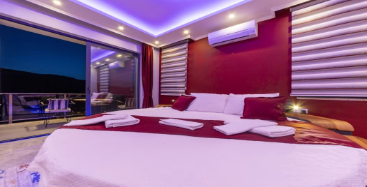 1. Yatak Odası : 1 adet çift kişilik yatak, klima, jakuzi, komodin, elbise dolabı, makyaj masası, banyo ve lavabo bulunmaktadır.
