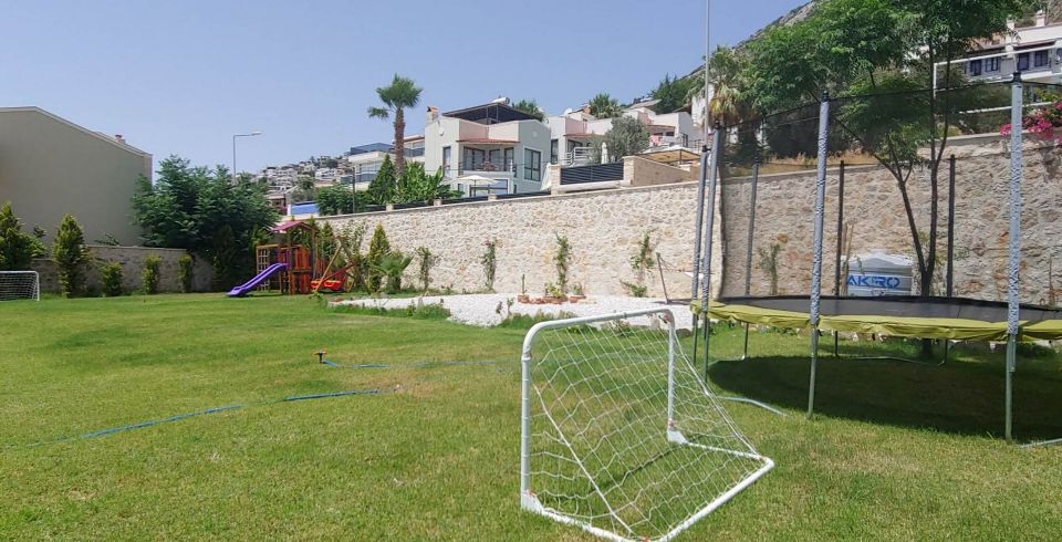 Dış mekânda 9 × 4 metre ölçülerinde özel bir havuz ve entegre jakuzi bölümü bulunur. Bu alan; şezlonglar, gölgeli oturma alanları, barbekü köşesi, al fresco yemek masası ile donatılmıştır. Ayrıca geniş bir bahçe alanı çocuklar için oyun alanı, futbol ağı ve trambolin ile desteklenmiştir.