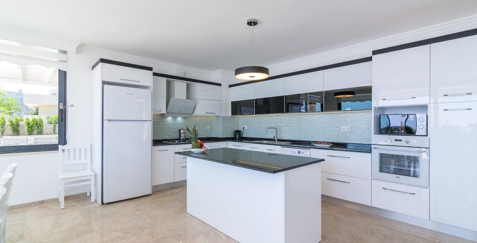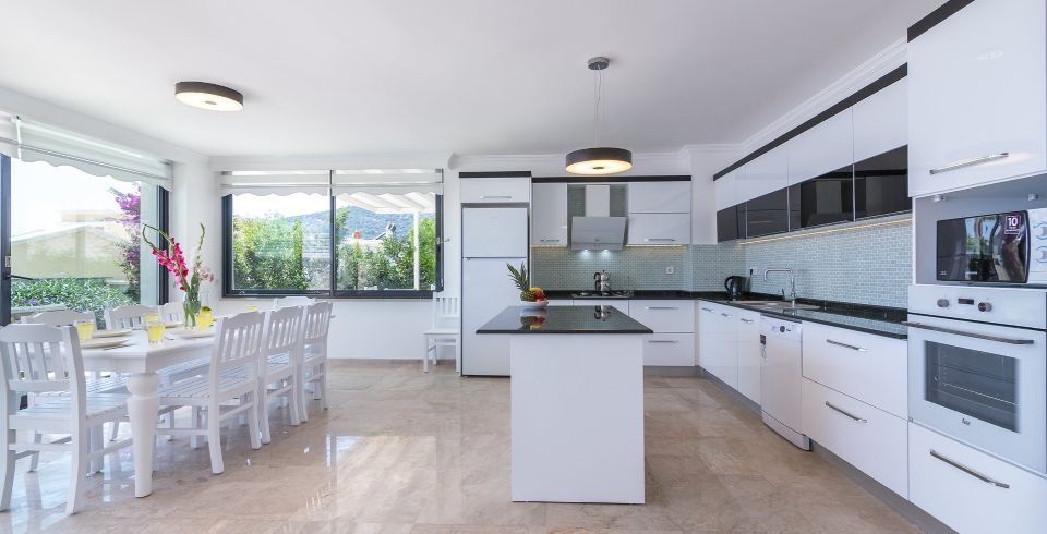 Mutfak : Villamız Amerikan mutfağında bulaşık makinası, buzdolabı, çamaşır makinası, ekmek kızartma makinası, yemek takımı, tencere tava takımı, çatal bıçak takımı, ketıl, 4'lü ocak, mikrodalga fırın bulunmaktadır.