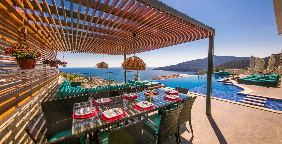 Eşsiz doğa ve deniz manzarasına sahip olan Villa Pırlanta Duo 5 Süit yatak odası ve 10 Kişilik konaklama imkanı sunmaktadır. Kalkan Koyunu, denizini ve adaları ayaklarınızın altına seren kesintisiz panoramik manzarası ile en güzel anılarınıza yenilerini ekleyeceğiniz bir bambaşka tatları tadacağınız harika bir tatil sizi bekliyor.