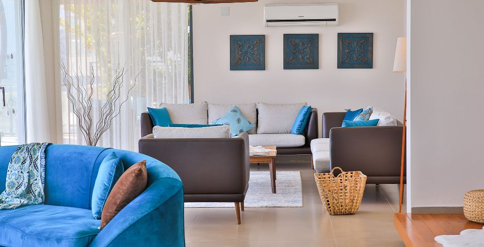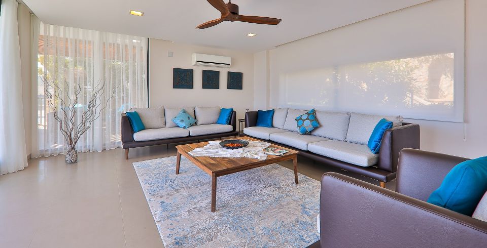 Salon : Salonda klima uydu alıcı, TV, DVD Player, oturma grubu, çocuk yatağı, çocuk koltuğu, lavabo yer almaktadır. Salon havuz katındadır. En üst katta dinlenmek ve güneşlenmek için çok geniş bir seyir terası daha vardır. Bu alanda da oturma gurubu ,masa ve sandalye bulunur.
