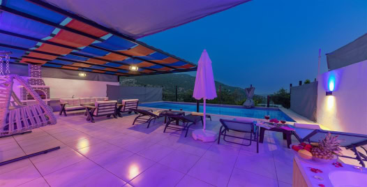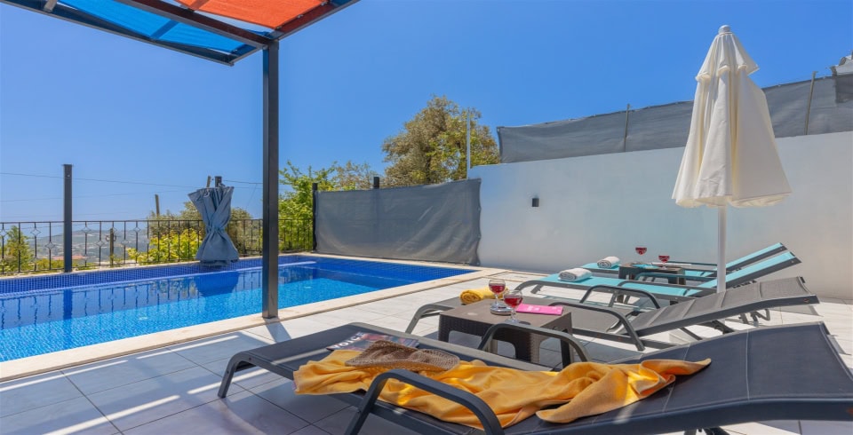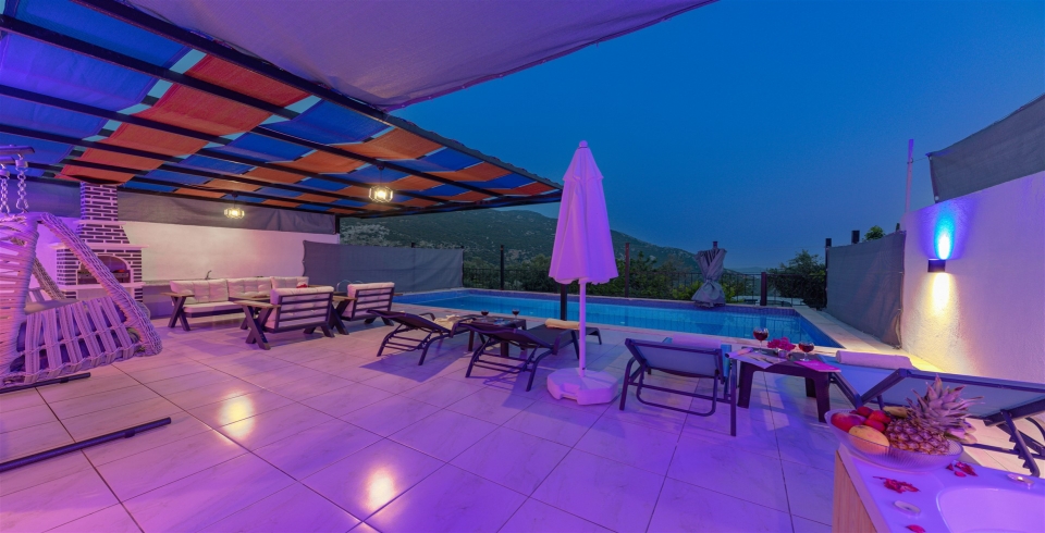 Villa Platin Kalkan İslamlar bölgesinde yer almaktadır. 2 yatak odasına sahip tatil villamız 4 kişilik konaklama kapasitesine sahiptir. Doğa içinde bir konuma sahip olan tatil villamızın havuz alanı sizlere keyifli bir tatil ortamı sunmaktadır. Balayı çiftleri ve çekirdek aileler için ideal bir seçenek olan muhafazakar hassasiyete sahip misafirlerimiz içinde uygun bir tatil ortamı sunmaktadır.