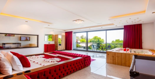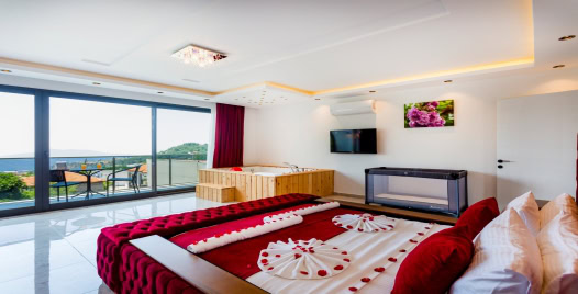 1. Yatak Odası : 1 adet çift kişilik yatak, klima, komodin, elbise dolabı, makyaj masası, jakuzi, banyo ve tuvalet bulunmaktadır.