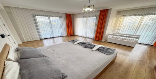 1. Yatak Odası : Çift kişilik bir adet yatak, elbise dolabı, komodin, klima, özel banyo ve tuvalet bulunmaktadır.
