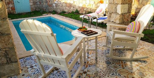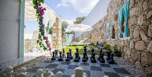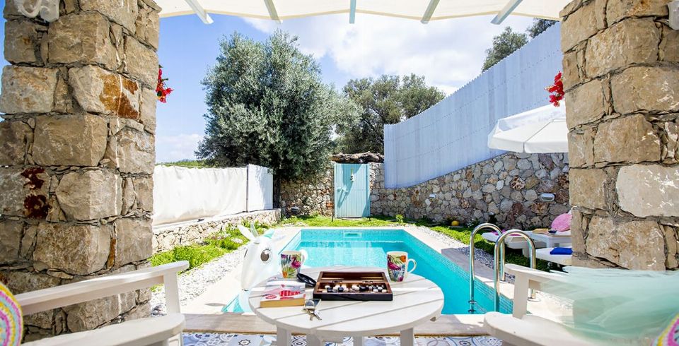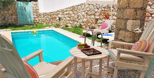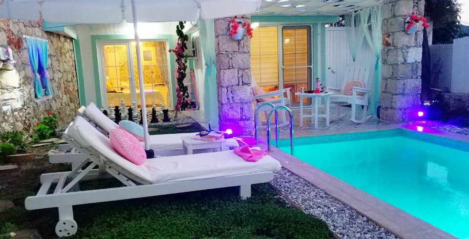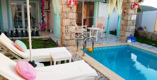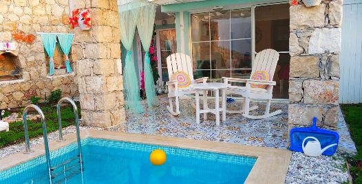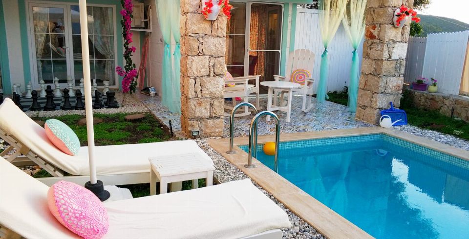Villa Pony, Muhafazakâr villa ve balayı villası olarak geçen villamız özel dekoru ve tasarımıyla özellikle balayı çiftlerine hitap ediyor. 2 Kişilik kapasitesi ile 1 yatak odasına sahip villamız tatlı tasarımıyla size bambaşka bir tatil fırsatı sunacak. Muhafazakâr olan villamız ve bahçesi dışarıdan görünmez aynı zamanda ısıtmalı havuz ile yaz kış tatil yapabilme fırsatı bulacaksınız. Villa Pony sizi, su yeşili kapısı ile karşılayarak tepesinde asırlık bir zeytin ağacı bulunur. Villada renkli çiçekler, pembe renkler ve tüller ağırlıklıdır. Havuza giderken çakıl taşlarıyla süslenmiş zemininde adeta denize giriyormuş hissi yaşatır. Kuş sesleri eşliğinde bu mini villada eşiniz ile beraber harika anılar biriktireceksiniz. Villa içerisinde ihtiyacınız olan eşyalar bulunmakla beraber yatak odasında da iki kişilik jakuzi bulunmaktadır. Villamızın bahçesinde güneşin ve havuzun tadını çıkartmaya doyamayacaksınız. Villa Pony sizi yaz kış tatil imkanlarıyla beraber siz tatilcilerini bekliyor.