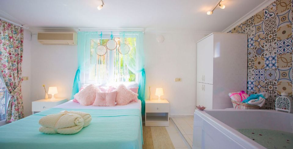 Yatak Odası : 1 adet çift kişilik yatak, klima, jakuzi, komodin, elbise dolabı, makyaj masası, banyo ve lavabo bulunmaktadır.