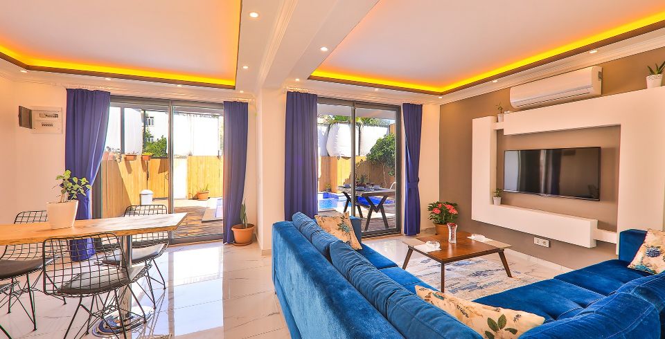 Salon : Villamızın salonunda oturma grubu, TV, internet, yemek masası, sehpa bulunmaktadır.