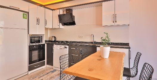Mutfak : Villa mutfağında açık mutfak 4 kişilik yemek takımı, buzdolabı, çamaşır makinası, mikrodalga fırın, 4l'ü ocak, ekmek kızartma makinası, kettle, çatal bıçak takımı, tencere tava takımı, bulaşık makinası bulunmaktadır.