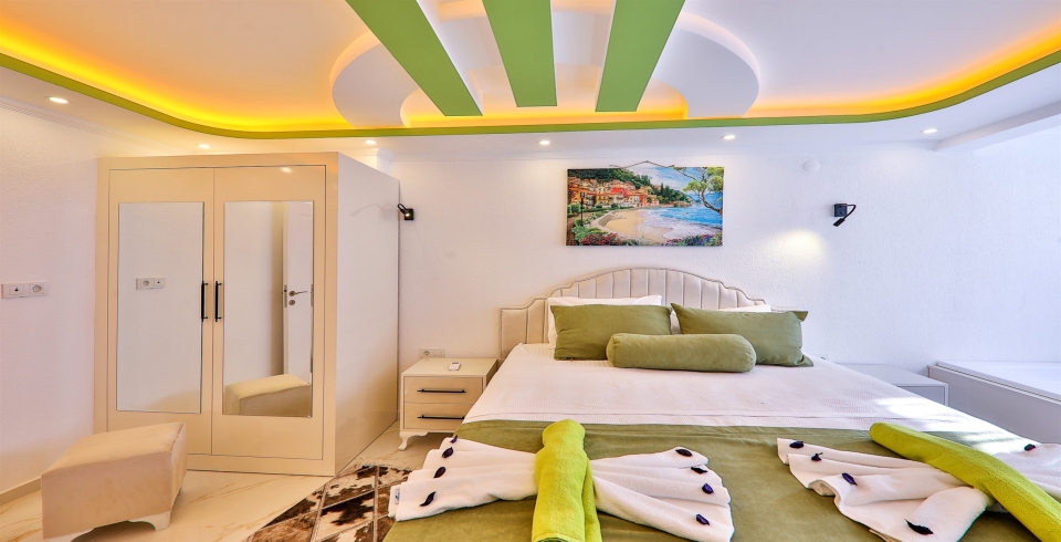 1: Yatak Odası: Çift kişilik yatak ,klima, jakuzi, komodin, makyaj masası ,banyo ve tuvalet bulunmaktadır.