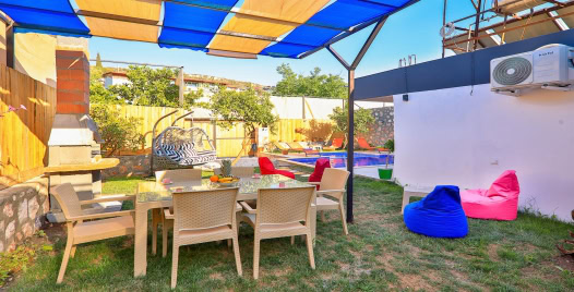 Havuz ve Bahçe: Havuz ve bahçesi korunaklı olup dışarıdan gözükmemektedir. Salıncak, Özel yüzme havuzu, şezlong, şemsiye, yemek masası ve barbekü bulunmaktadır.