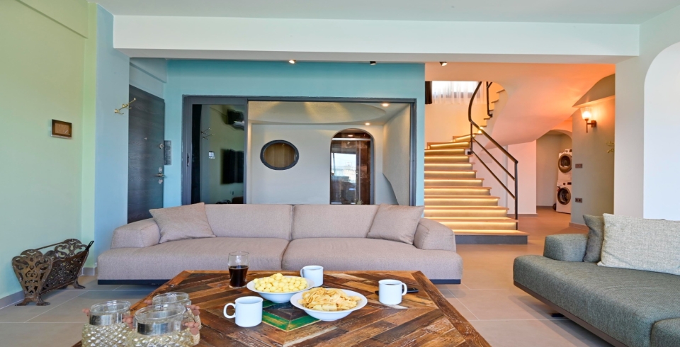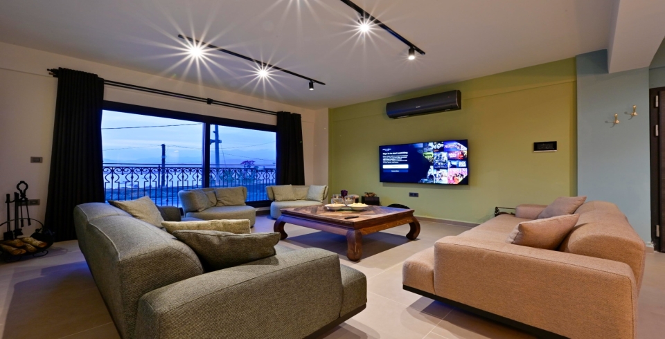 Salon: Özenle döşenmiş salon, modern koltuklar, 6 kişilik yemek masası, LCD TV ve klima bulunmaktadır.