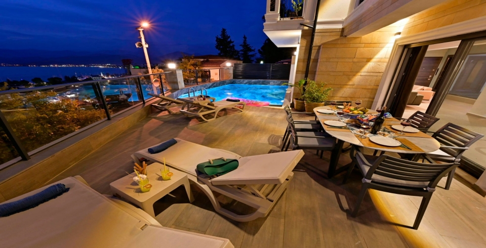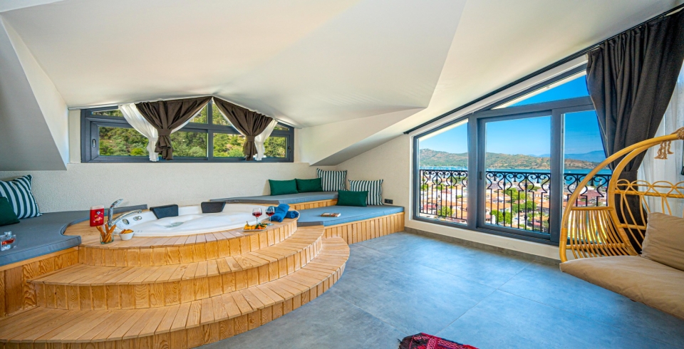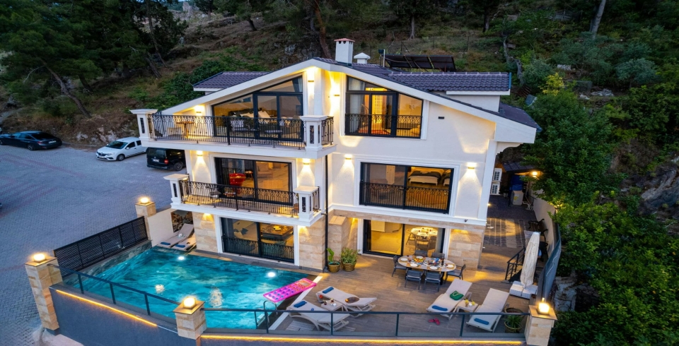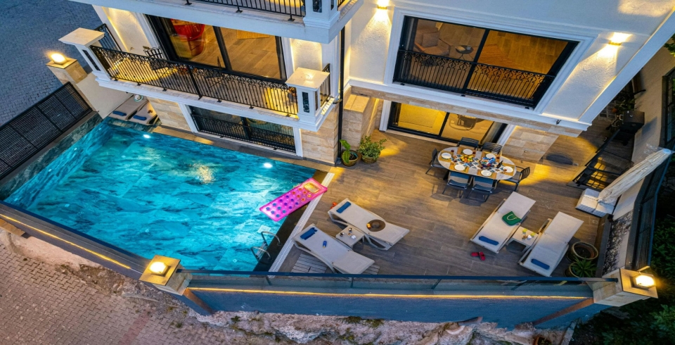 Villa Porto Fethiye, Muğla’nın Fethiye ilçesinde, merkezi konumda bulunan, 6 kişi kapasiteli özel bir villadır. 3 yatak odası ve 4 banyoya sahip villa, konforu ön planda tutar. İçinde jakuzili Villa özellikli ebeveyn odası, geniş salon, modern açık mutfak ve klima gibi temel yaşam alanları eksiksizdir. Villanın hem açık hem kapalı ısıtmalı havuzu bulunur; kapalı havuz ısıtma sistemi ile desteklenmiş olarak yıl boyunca kullanılabilir. Deniz manzarlı ve özel korunaklı havuz alanı tatilinizin huzur dolu olmasını sağlar.