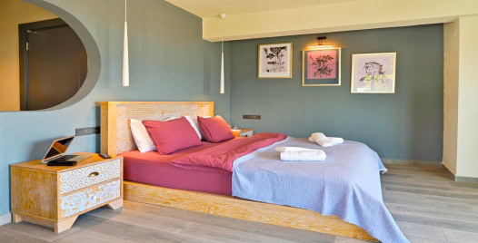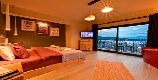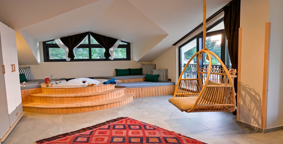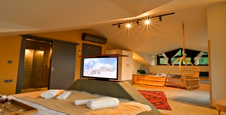 1.Yatak Odası: 1 adet çift kişilik yatak, elbise dolabı, komodin, klima, makyaj masası, jakuzi, TV, banyo ve lavabo bulunmaktadır.