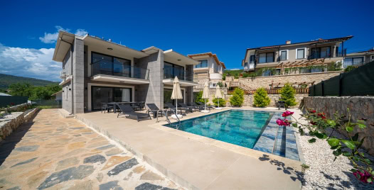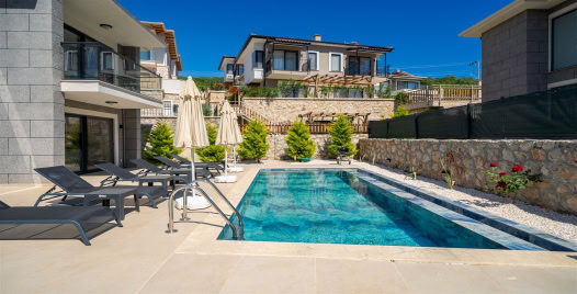 Havuz ve Bahçe : Özel yüzme havuzu bulunan villamızın havuz terasında şemsiye, şezlong, barbekü, pergole, oturma alanı, yemek masası ve sandalyeler bulunmaktadır.