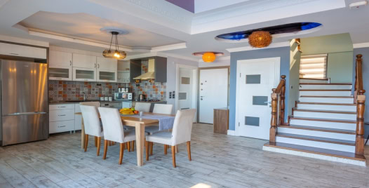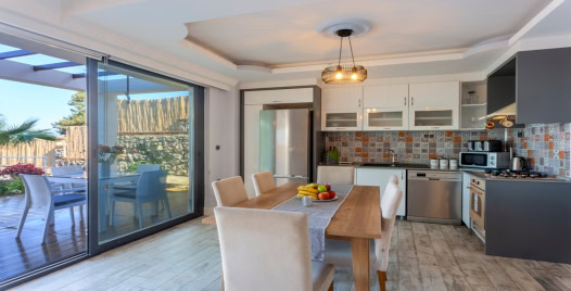 Mutfak: Açık planlı mutfak, 6 kişiye yetecek kadar mutfak malzemeleri, buzdolabı, fırın, ocak, mikrodalga fırın, bulaşık makinesi, çamaşır makinesi, tost makinesi, kettle ve çaydanlık bulunmaktadır..