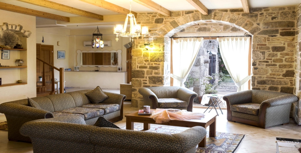Salon : Villamızın Salonunda oturma grubu, TV, uydu, internet, klima, ve havuz terasına çıkış yapılabilmektedir.
