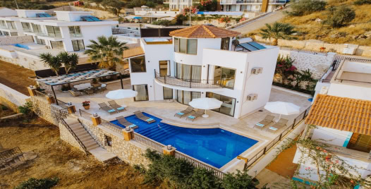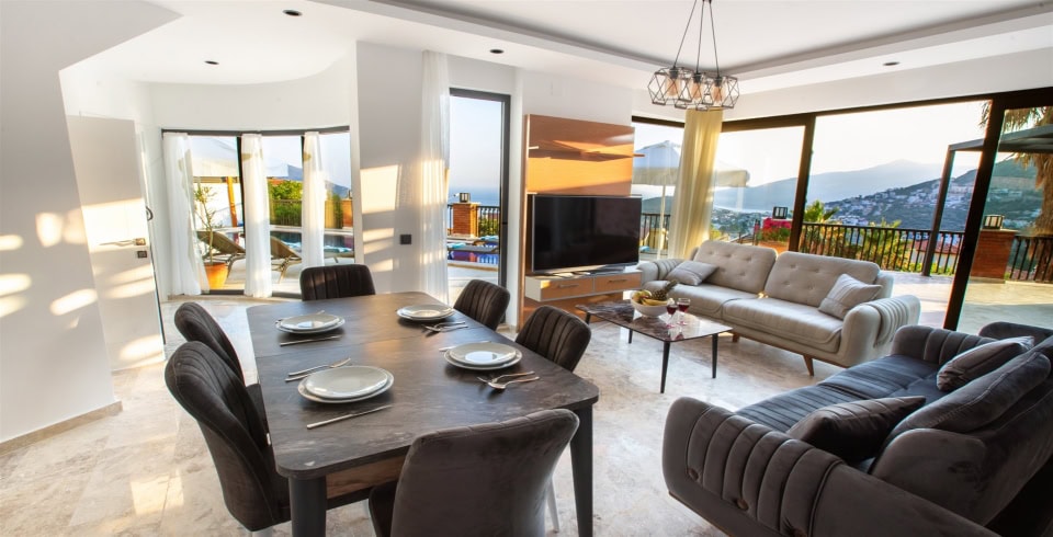 Kalkan’ın gözde bölgesi Kızıltaş’ta yer alan Villa Quinn, üç yatak odasıyla 6 kişiye kadar konforlu bir konaklama sunarken, zarif detaylarla dolu modern iç dizaynıyla sizi her adımda özel hissettirir.