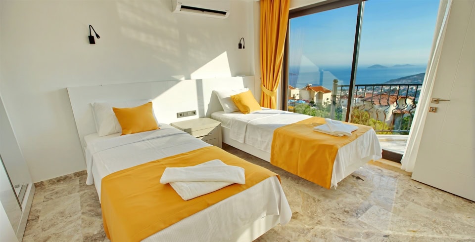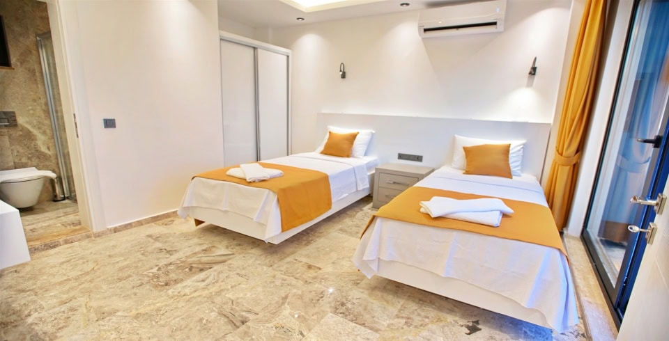 4. Yatak Odası : Tek kişilik iki adet yatak, elbise dolabı, komodin, klima, özel banyo ve tuvalet bulunmaktadır.