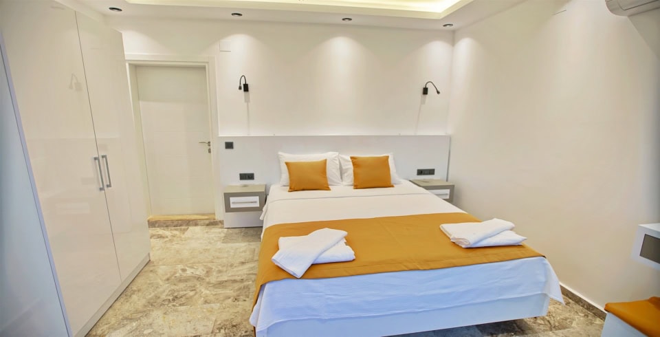 3. Yatak Odası : Çift kişilik bir adet yatak, elbise dolabı, komodin, klima, özel banyo ve tuvalet bulunmaktadır.