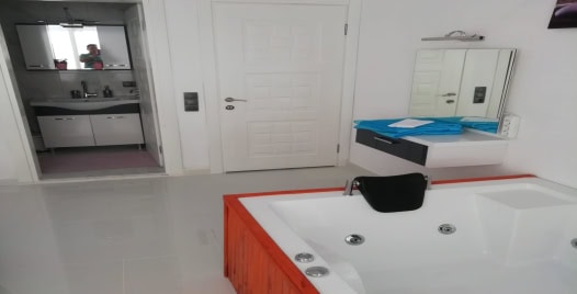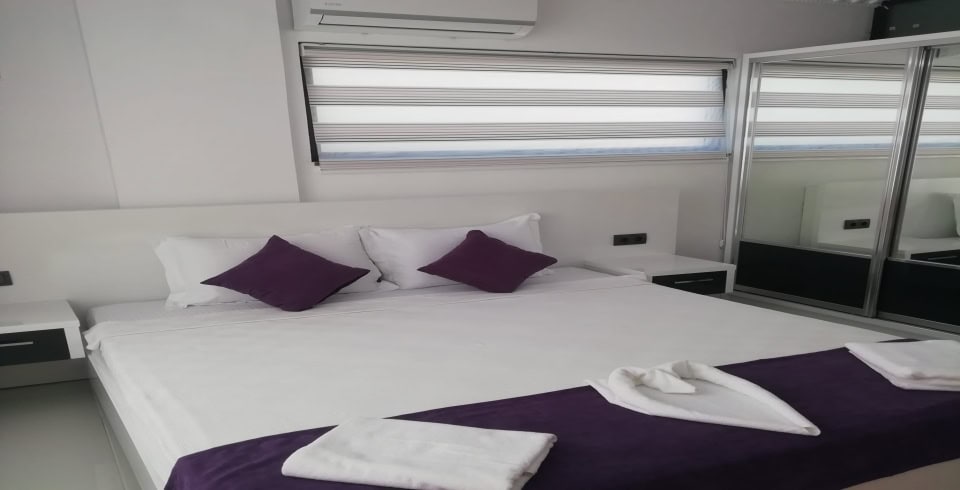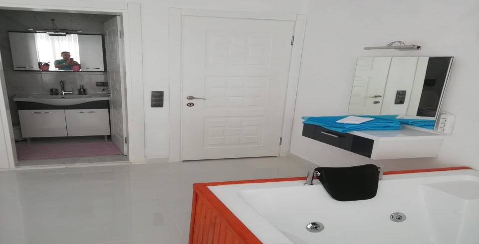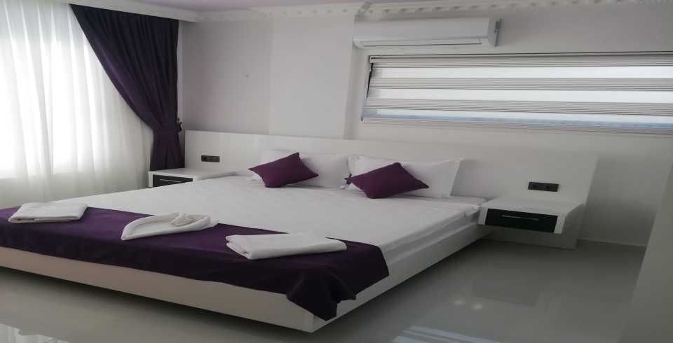 Yatak Odası : Çift kişilik yatak, komodin ,klima, makyaj masası, elbise dolabı, jakuzi, banyo ve tuvalet bulunmaktadır.