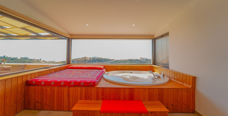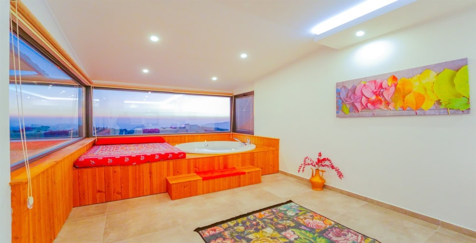 Yatak Odası: 1 adet çift kişilik yatak, klima, elbise dolabı, makyaj masası, komodin, jakuzi bulunmaktadır.
