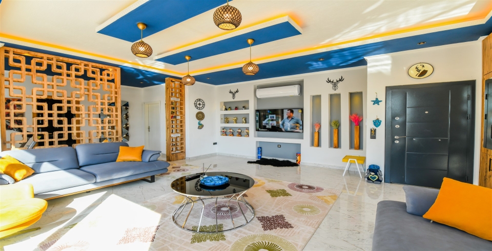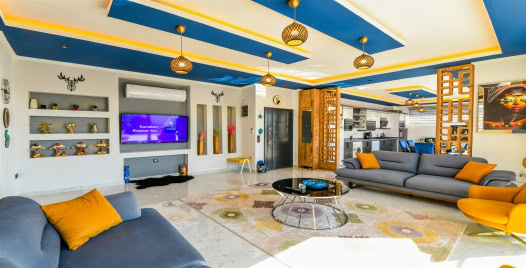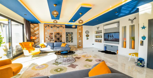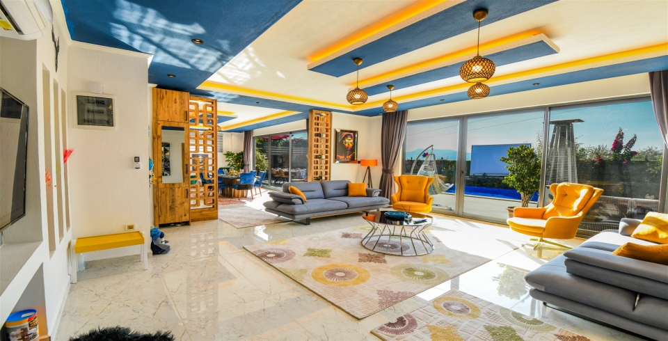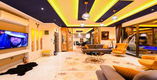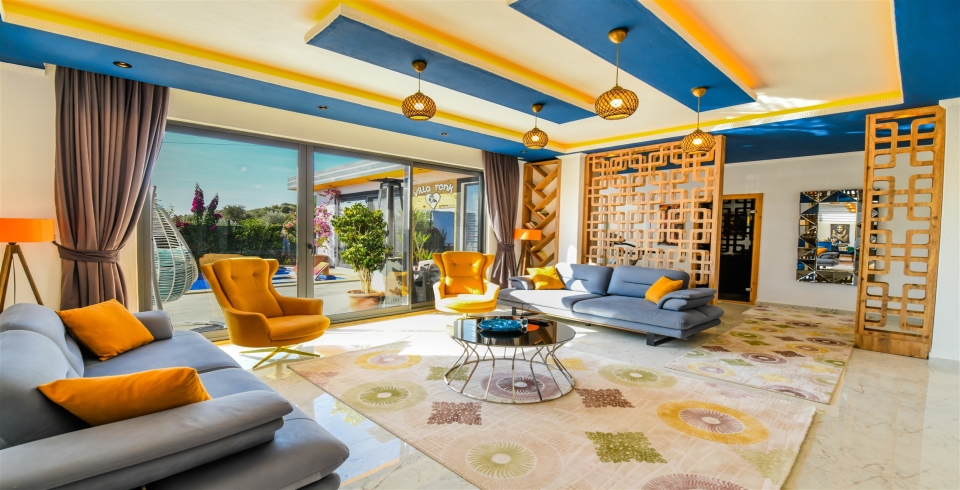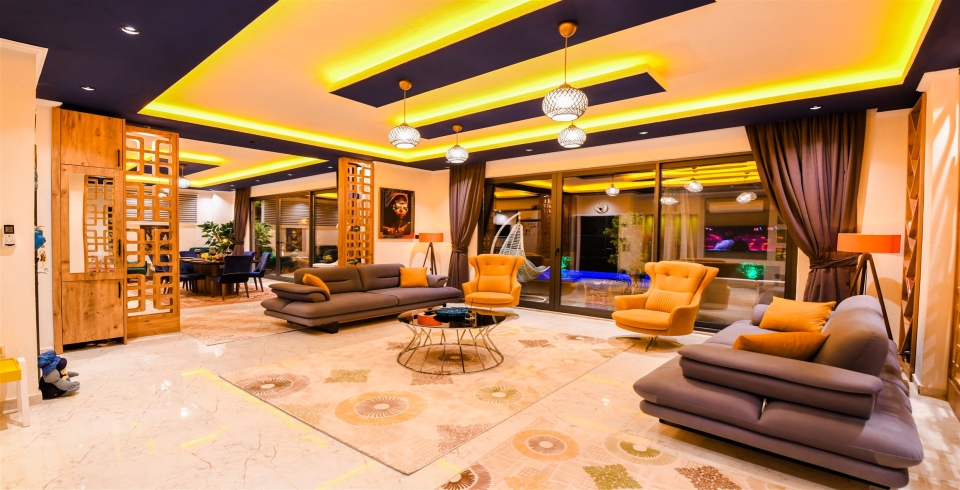 Salon : Villa Renk’in salonunda sizi şık bir oturma grubu ile klima, televizyon, internet, uydu, koltuk, sehpa ile ferah bir salon spor aletlerımızden koşu bandı ağrılık dambıl plates vb bekliyor olacaktır. Havuz terasına çıkış yapılmaktadır.