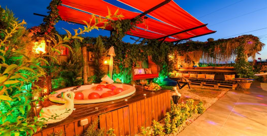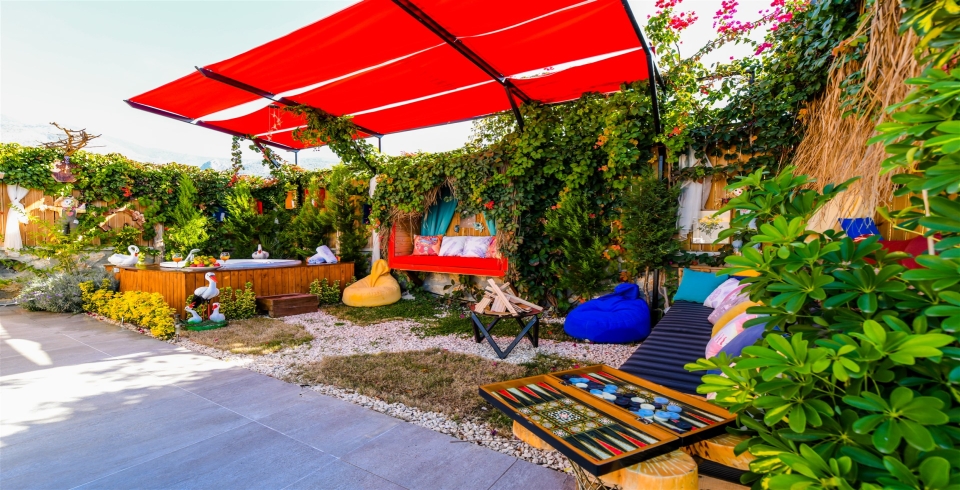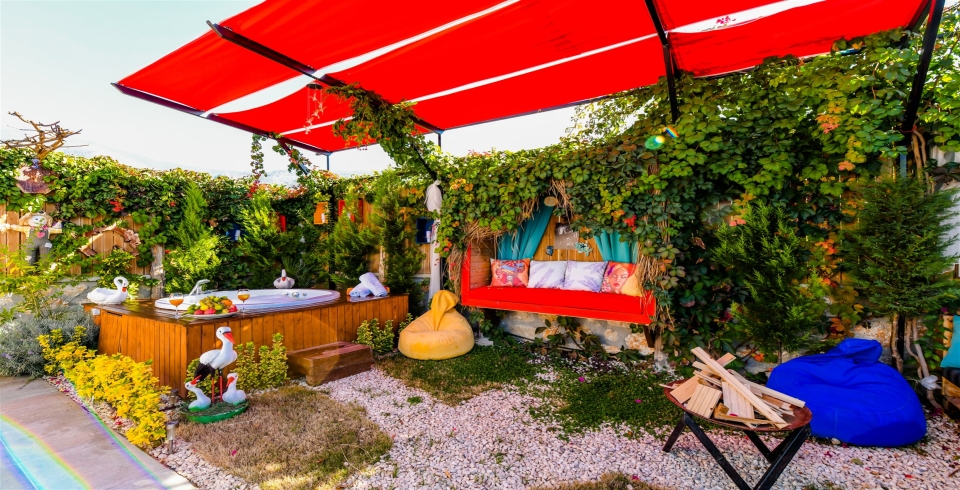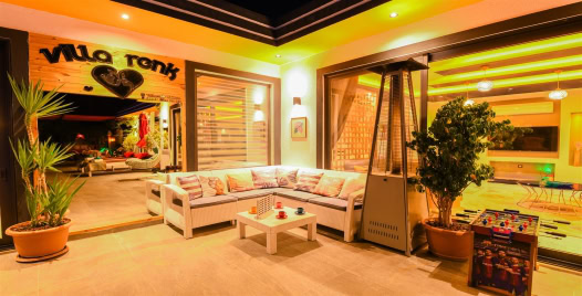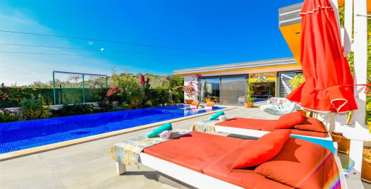 Bahçe : Villamızın bahçesinde özel yüzme havuzu, güneşlenmeniz için 4 adet şezlong, masa tenısı çocuk oyun parkı güneşlenme terası, 6 kişilik masa, oturma grubu, güneş şemsiyesi bulunmaktadır.