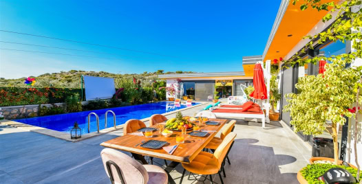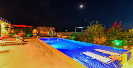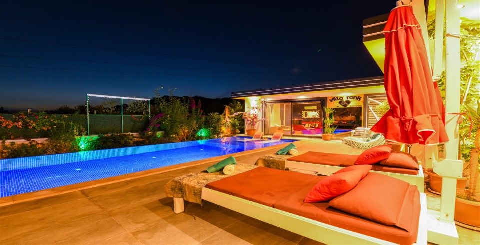 Kiralık, yazlık, korunaklı, muhafazakar villamız şüphesiz Kalkan’nın en güzel köyü olan Çayköy bölgesinde konumlanmıştır. Doğa ile iç içe olan geniş bahçeli, müstakil villamız tam da şehirden kaçıp, bir yılın tüm yılın yorgunluğunu atmak, tatilin keyfini çıkarmak isteyen müşterilerimize göre. Villa Renk’in inşaatı 2020 yılında tamamlanmış olup, doğa manzarasına karşıdır. İnşaatı yeni tamamlanmış olan villamız son derece modern eşyalarla donatılmıştır. Ultra lüks villamızda aradığınız her şeyi eksiksiz bir şekilde bulabilirsiniz. Villamızın bahçesi, havuzu ve havuz terası korunaklı olup muhafazakar bir villa seçeneğidir. Villa Renk’in hem içerisinde hem de dışarısında jakuzi bulunmaktadır. Villamızı diğer villalardan ayıran özelliği içerisinde sauna ve sinema salonu mevcut olmasıdır. Villa Renk Kalkan Merkez’e 15 km mesafe uzaklığında olup, en yakın plaja 16 km mesafe uzaklığındadır. Villa Renk her şeyiyle son modaya uygun bir şekilde tasarlanmıştır. Sizleri burada ağırlamaktan mutluluk duyarız. İyi tatiller dileriz.