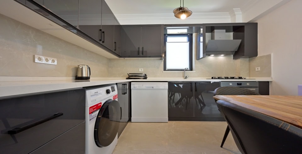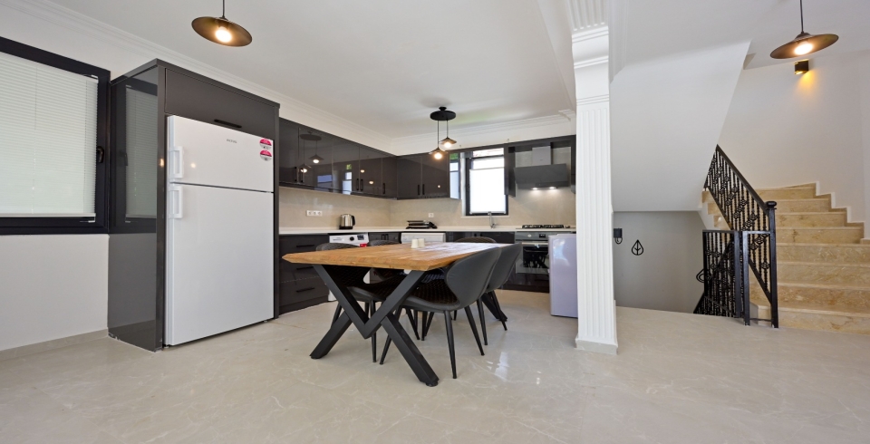 Mutfak: Açık planlı mutfak, 8 kişi ve daha fazla kişiye yetecek kadar mutfak malzemeleri, buzdolabı, fırın, ocak, mikrodalga fırın, bulaşık makinesi, çamaşır makinesi, tost makinesi, kettle ve çaydanlık bulunmaktadır..