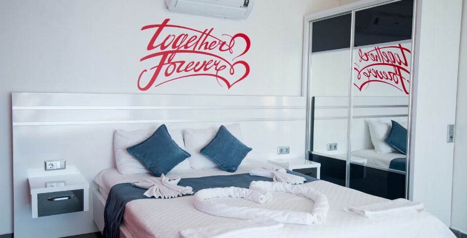 1. Çift Kişilik Süit Yatak Odası : Klima, jakuzili elbise dolabı, makyaj masası, komodin, lavabo ve banyo bulunmaktadır.