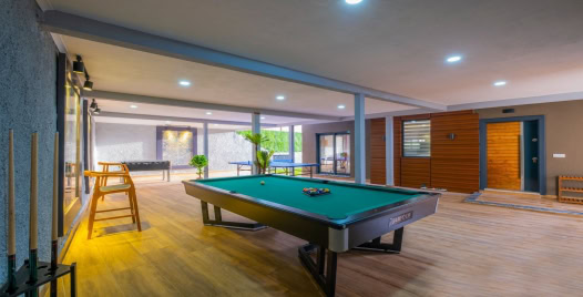 Eğlence ve keyif Villa Rosewood’un en büyük ayrıcalıklarından biri! Bilardo masası,langırt ve tenis masası ile dostlarınızla keyifli rekabetlere girebilir, doğayla iç içe geniş bahçede vakit geçirerek ruhunuzu dinlendirebilirsiniz. Villanın modern iç dizaynı, lüks detayları ve şık dekorasyonu ise konforunuzu en üst seviyeye taşıyor.