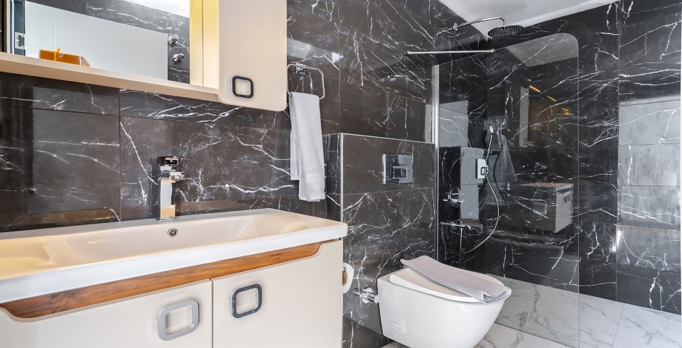 2. Yatak Odası : 1 Adet çift kişilik yatak, komodin, gardırop, makyaj masası, klima, balkon, Jakuzi, tuvalet ve banyo bulunmaktadır. Odamızdan deniz manzarası görülmektedir.